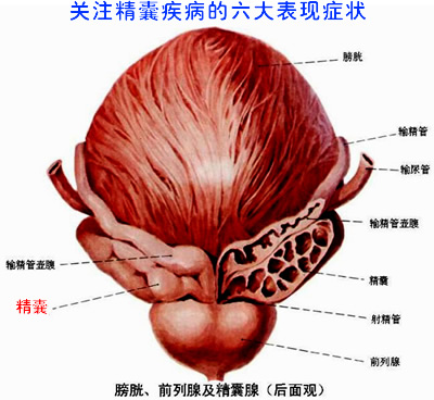 1、血精:这是精囊炎十分明显的症状,血精就是排出的精液颜色异常,呈现粉红色或者红色,或者带有血块的精液,急性炎症期时,症状更明显。